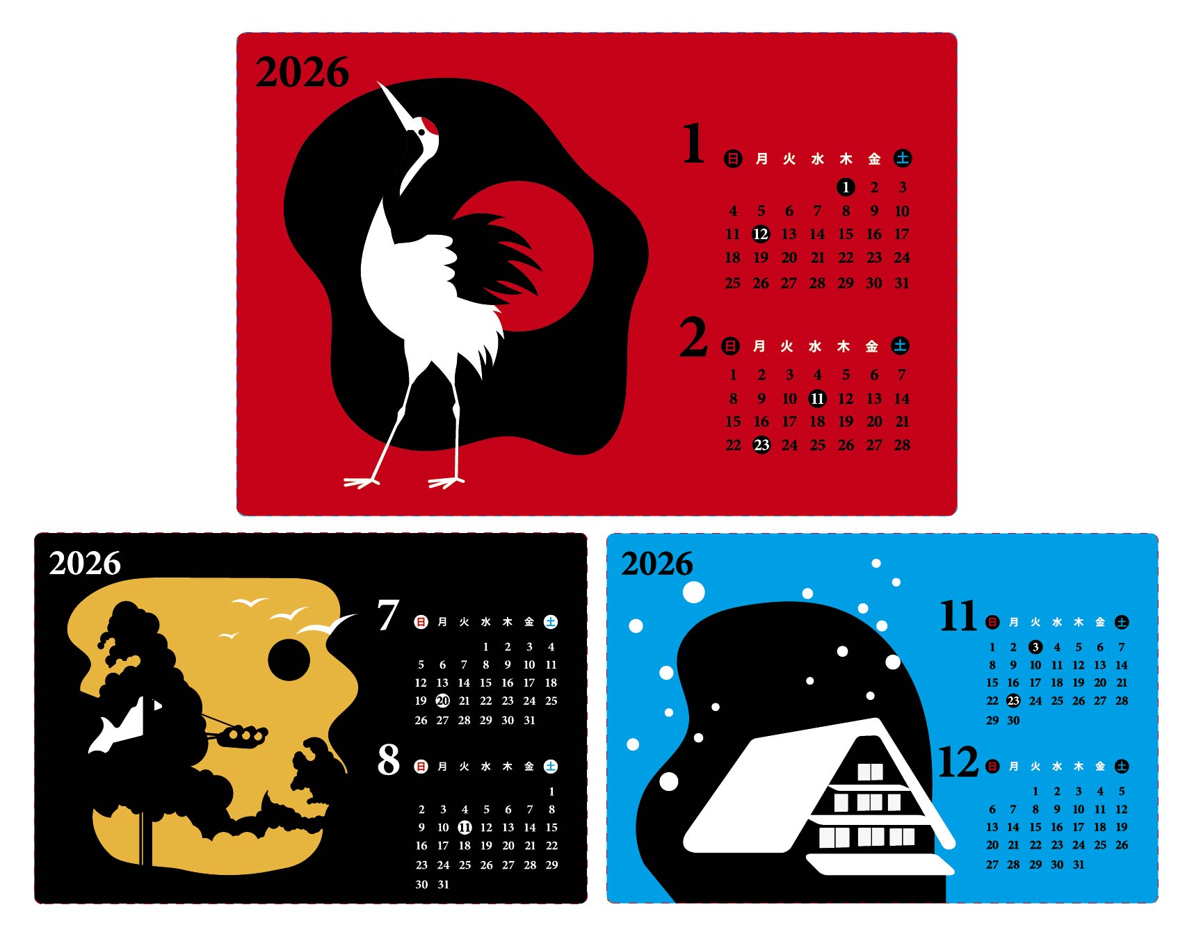 2026 ケースカレンダー、アート紙【名入れなし】/シール印刷