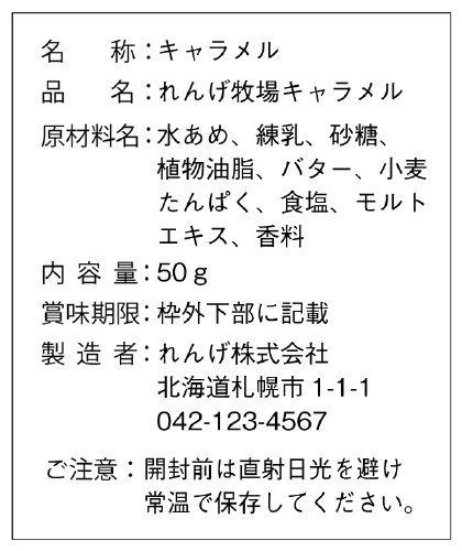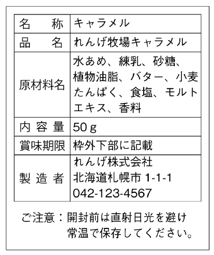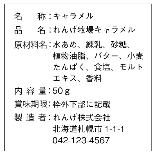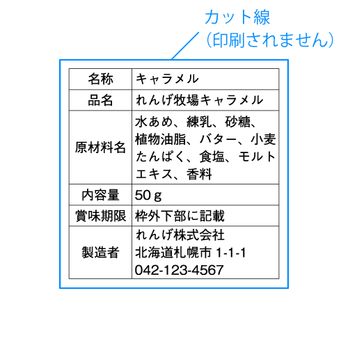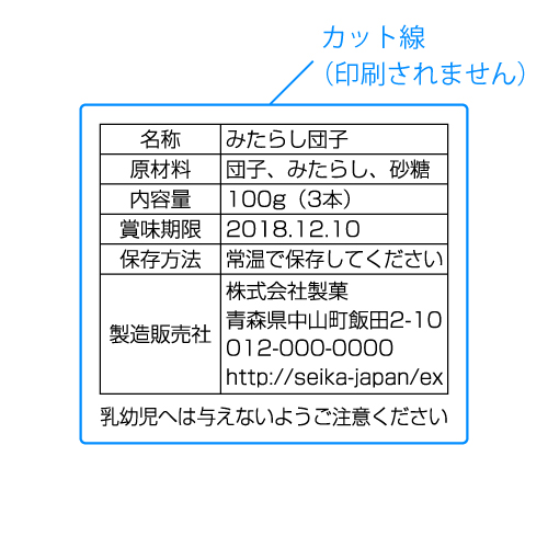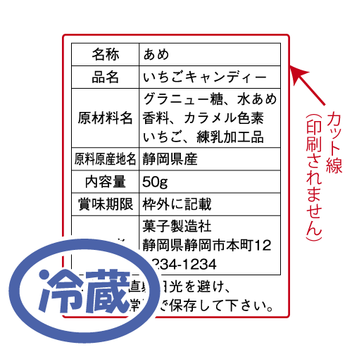内容表示シールは食品や商品の内容(成分、内容量、生産元)などを表示するシールです。