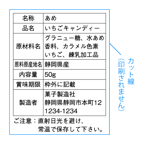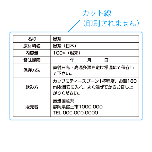 内容表示シール03-2・上質紙・一般強粘着タイプ・ラミネート無し・30平方cm以内