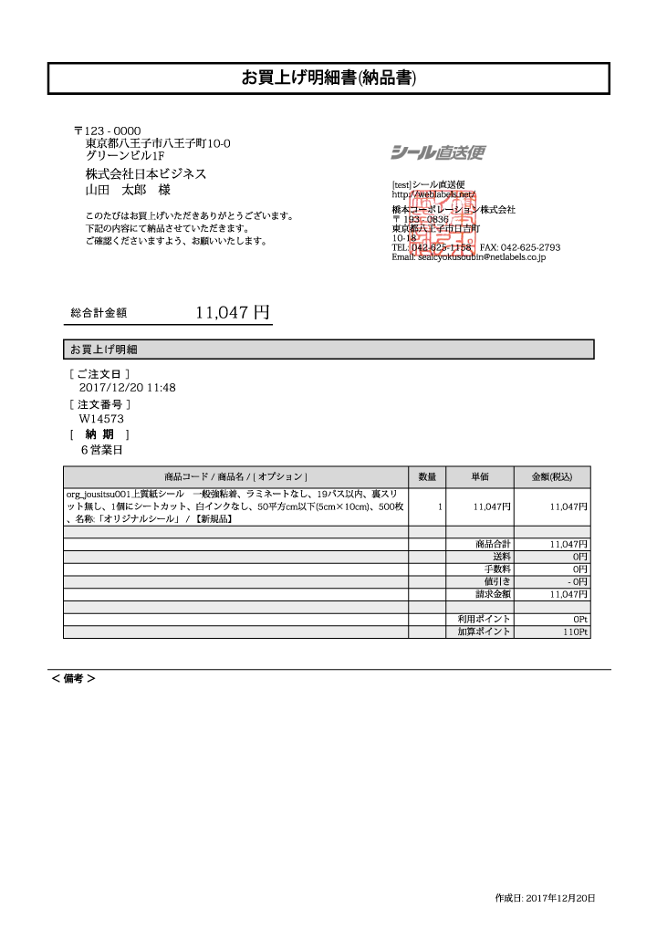 ※商品発送前や商品納品後の個別発行はおこなっておりませんのであらかじめご了承下さい。