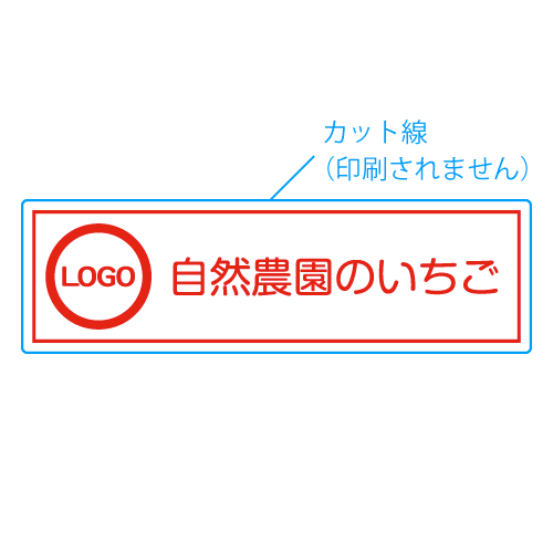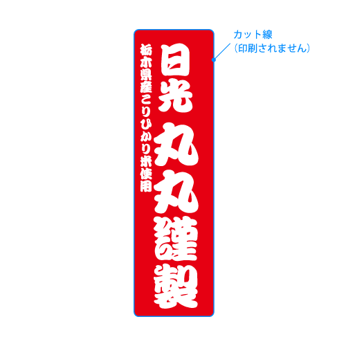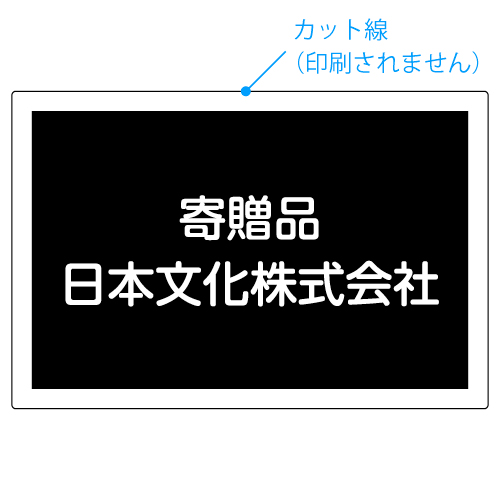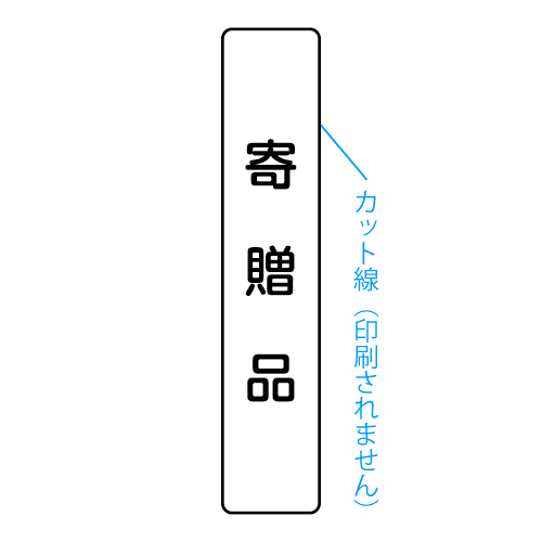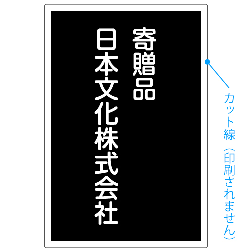 会社名を印字して寄贈品に貼付するシールです。こちらは縦書きのデザインです。