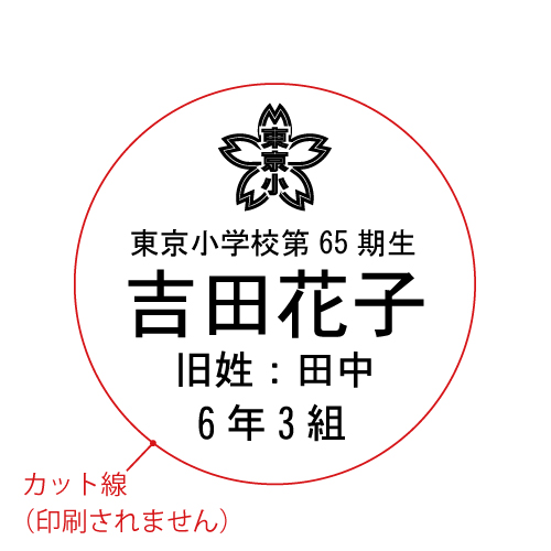 同窓会名札シール・サテンシール・一般強粘着・ラミなし・シートに複数枚・50平方